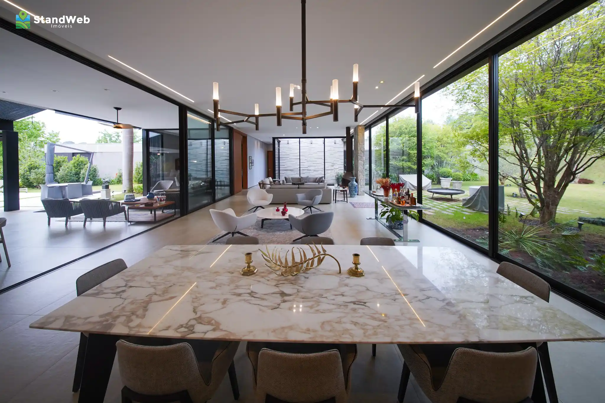 Elegância, conforto e integração com a natureza definem esta residência térrea de altíssimo padrão.