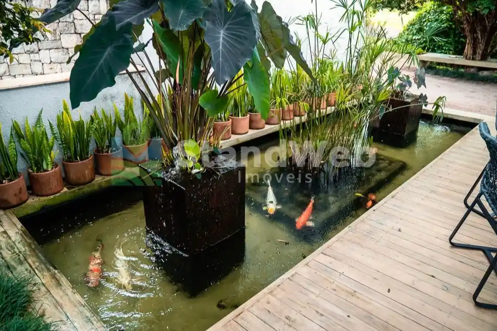 A área de lazer é um capítulo à parte: piscina automatizada com hidromassagem, spa completo com jacuzzi, sauna, sala de massagem e espaço de descanso. Gourmet Viking totalmente equipado, duas cozinhas, adega climatizada e lounge externo com fire pit, além de lago com carpas, horta e paisagismo assinado pelo renomado Alexandre Furcolin, com palmeiras de 20 metros.